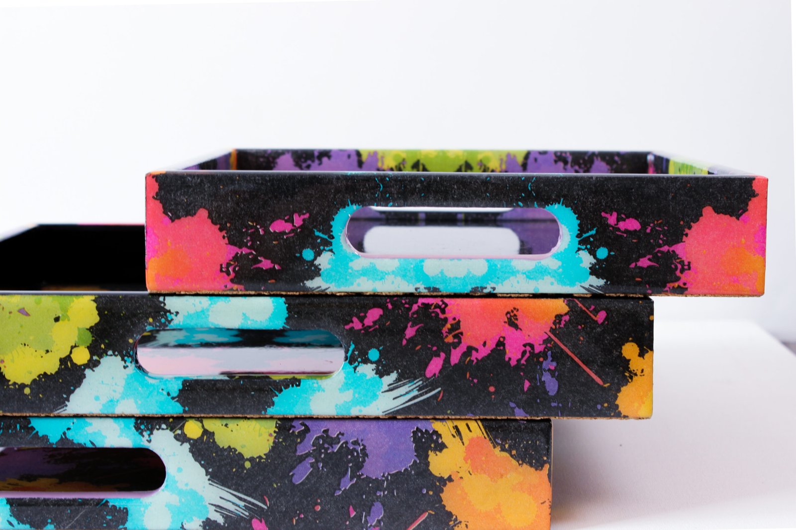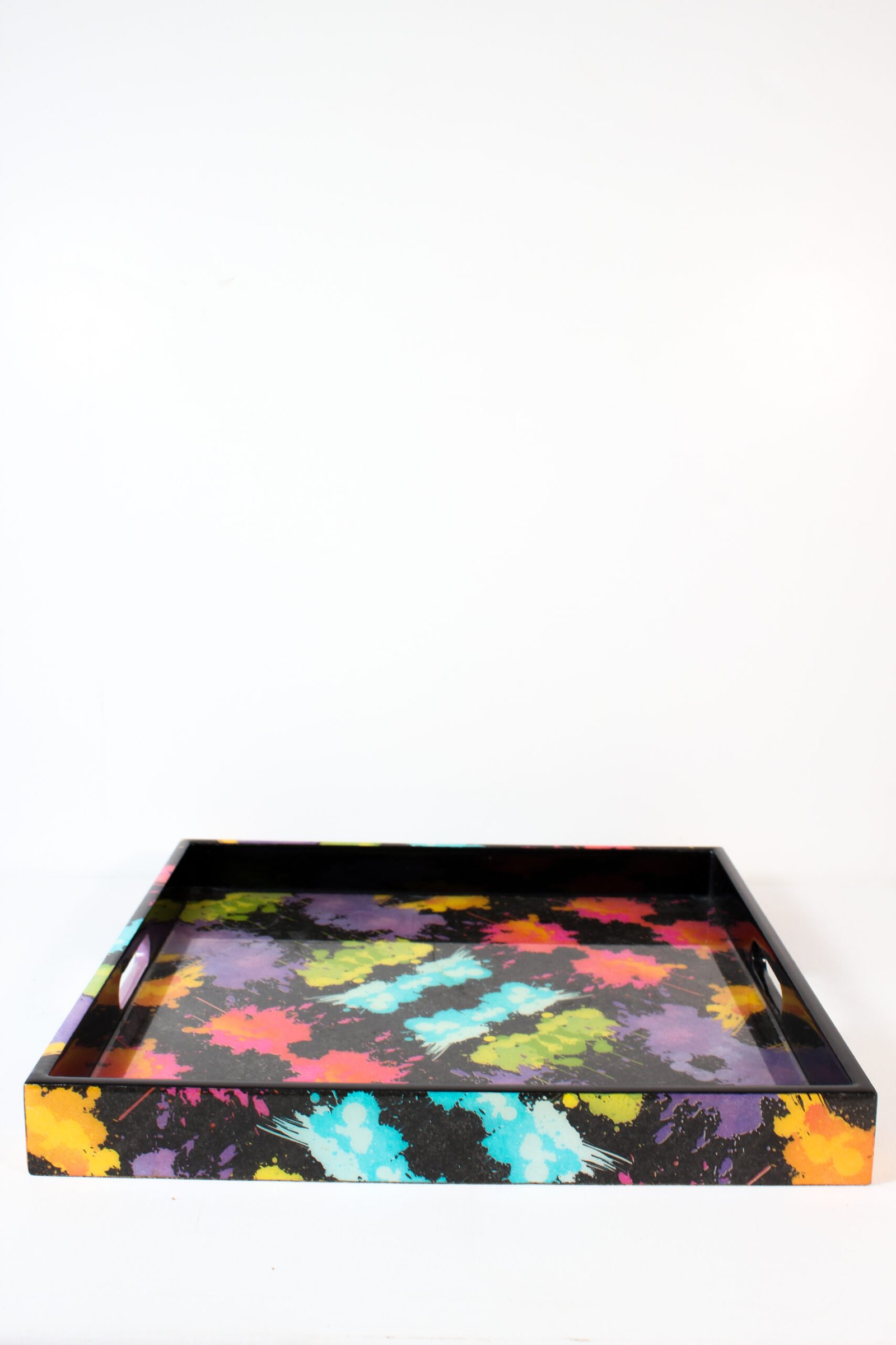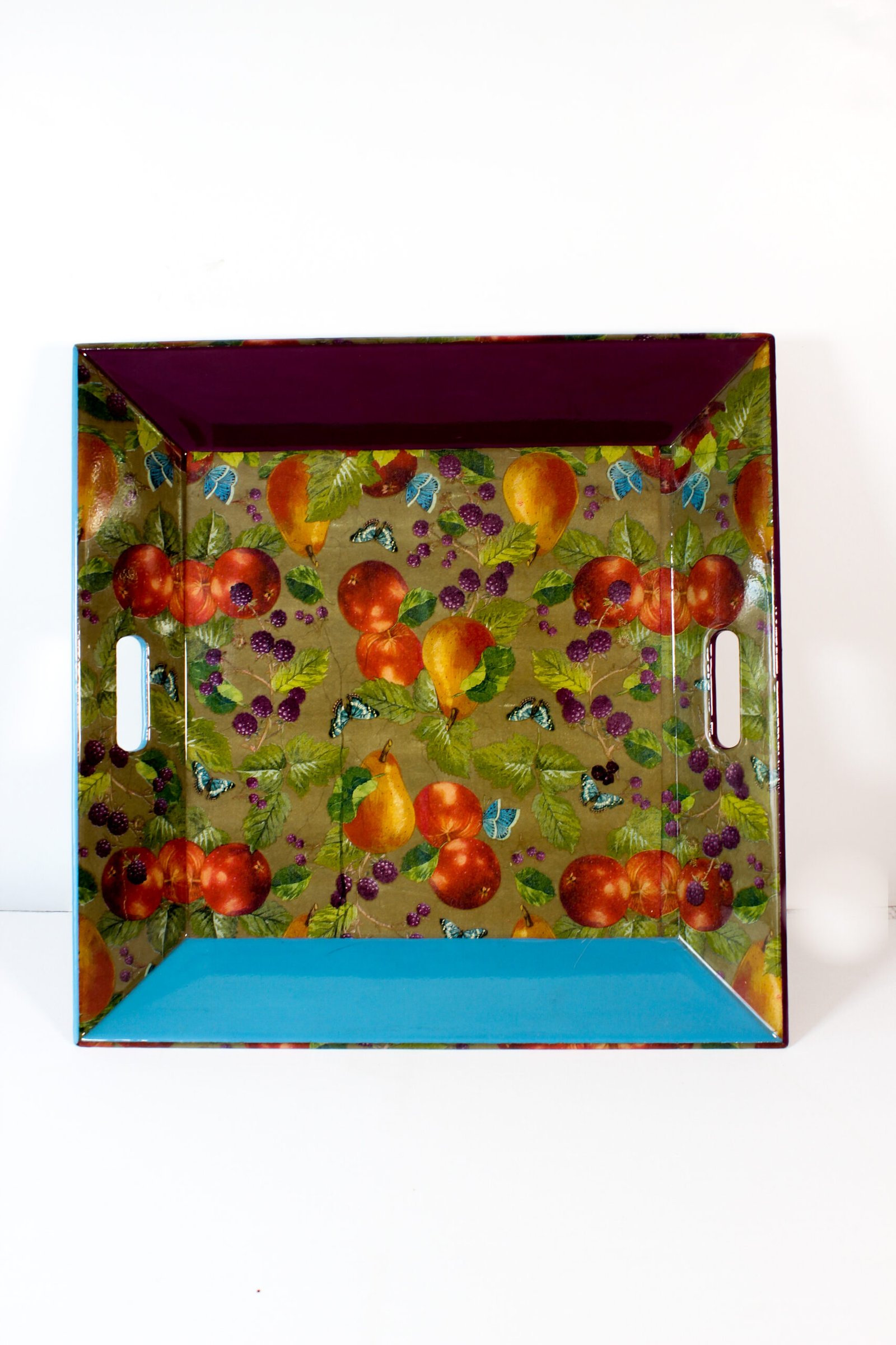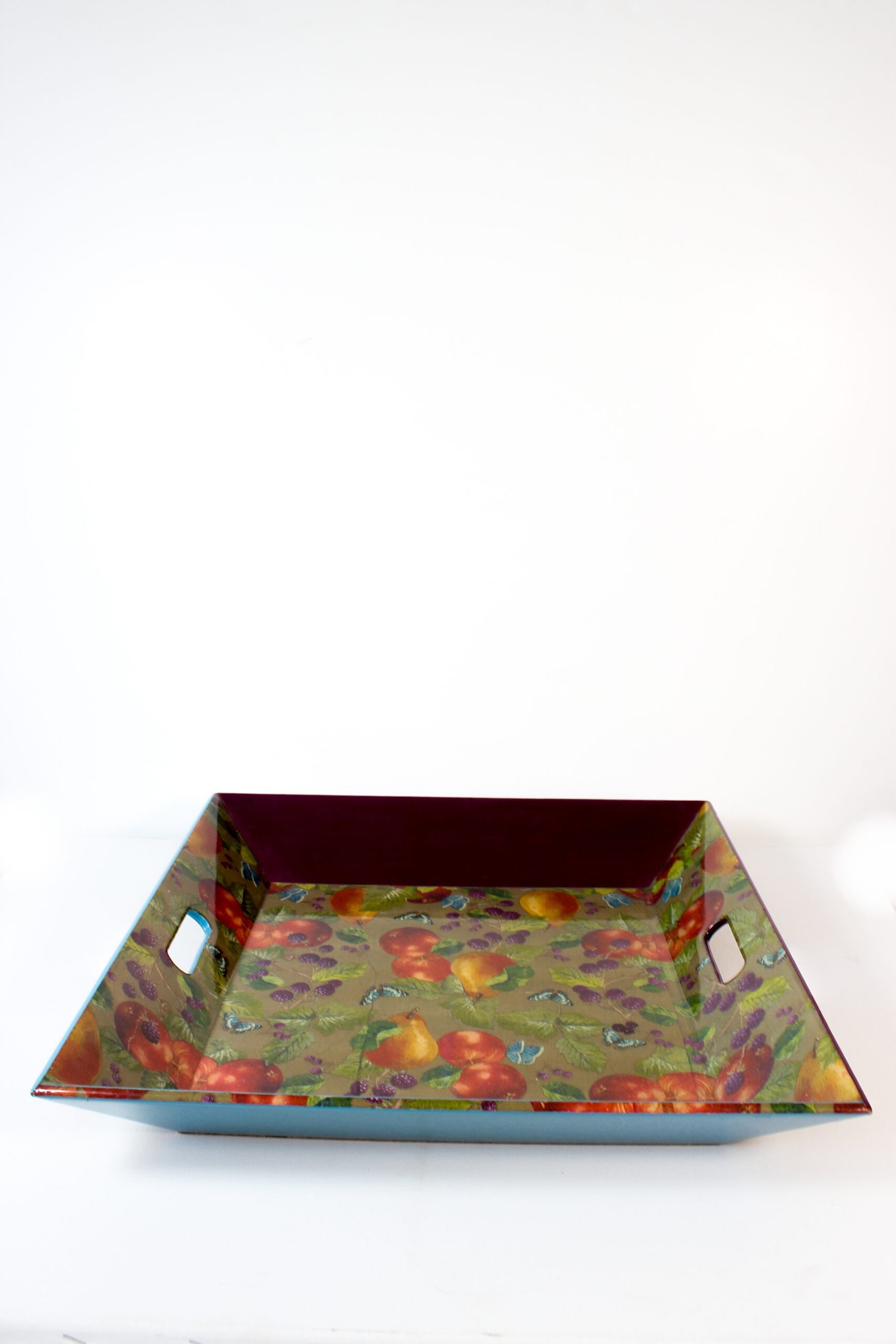 Charola artesanal decorativa con forma cuadrada, tamaño grande