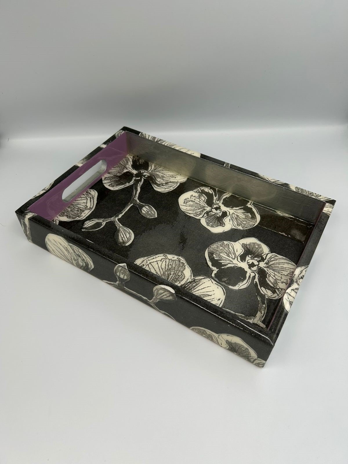 Charola artesanal decorativa con forma rectangular, tamaño chico