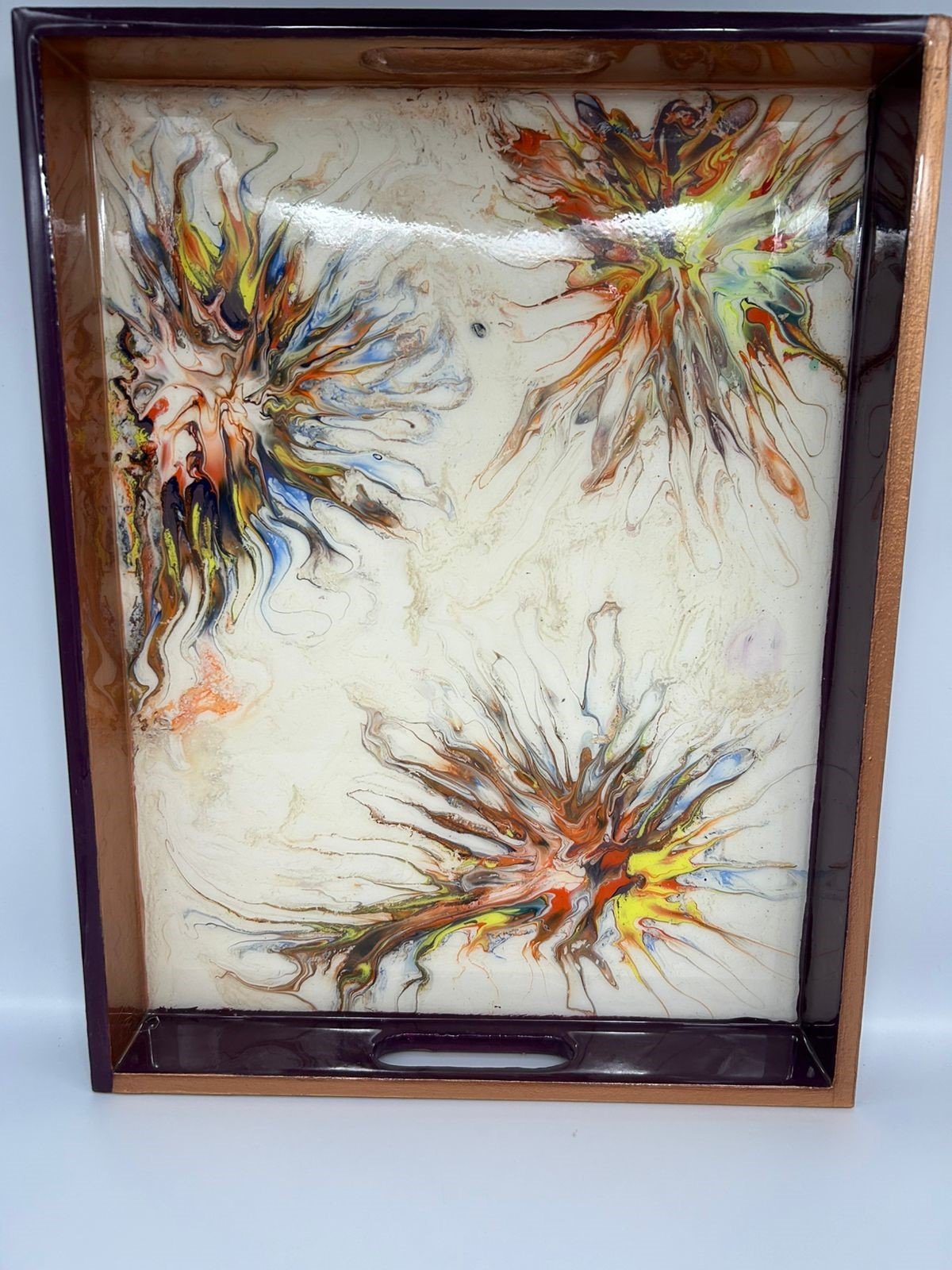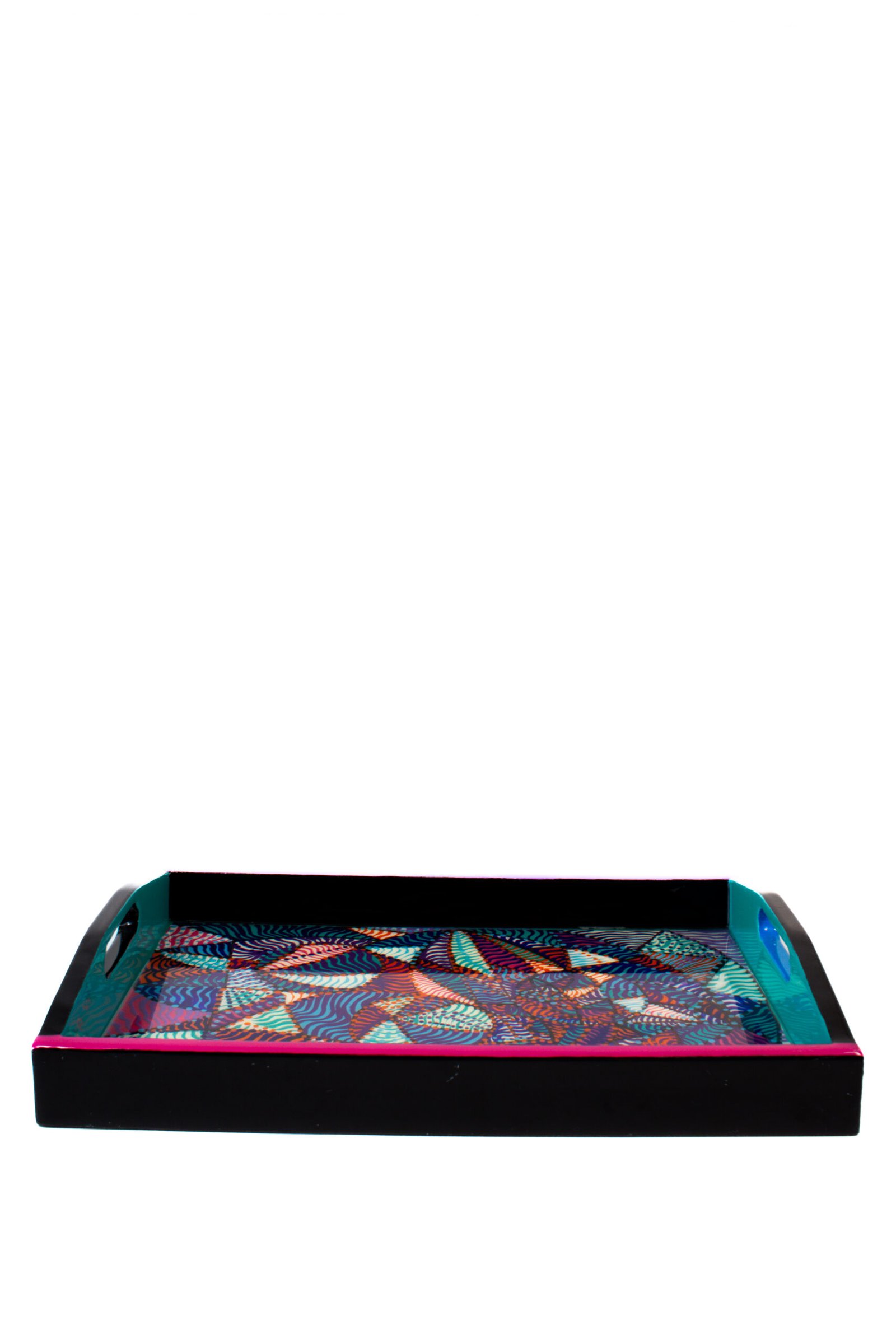 Charola artesanal decorativa con forma rectangular, tamaño grande.